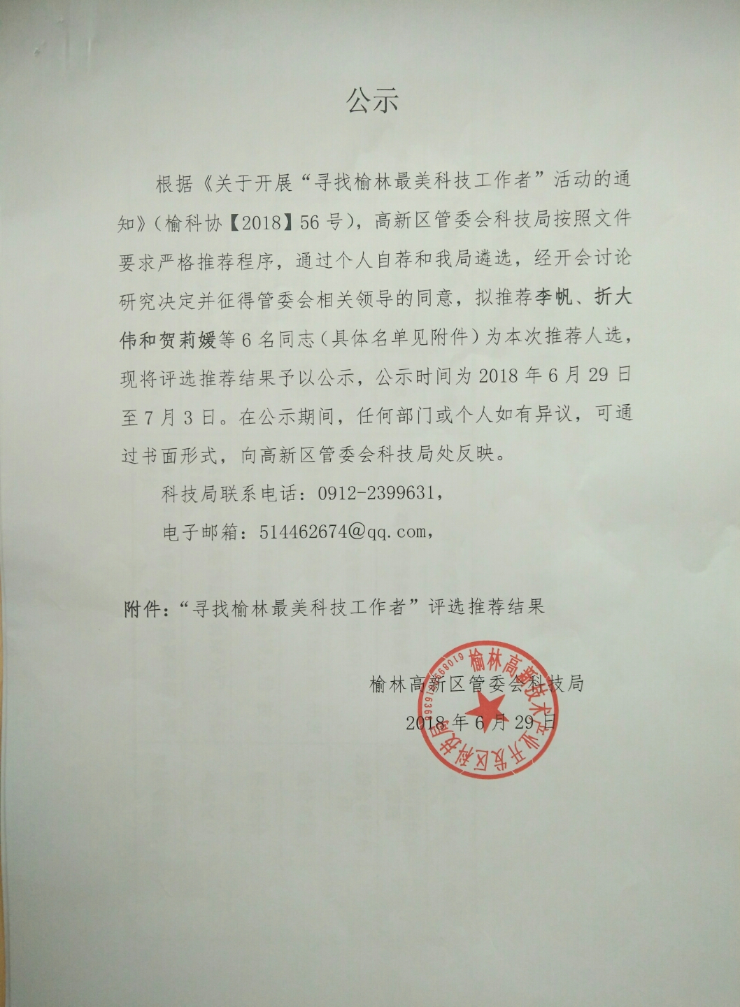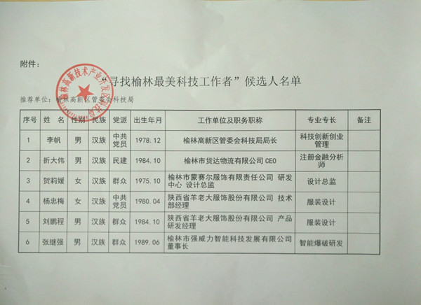 “寻找榆林最美科技工作者”推荐结果公示